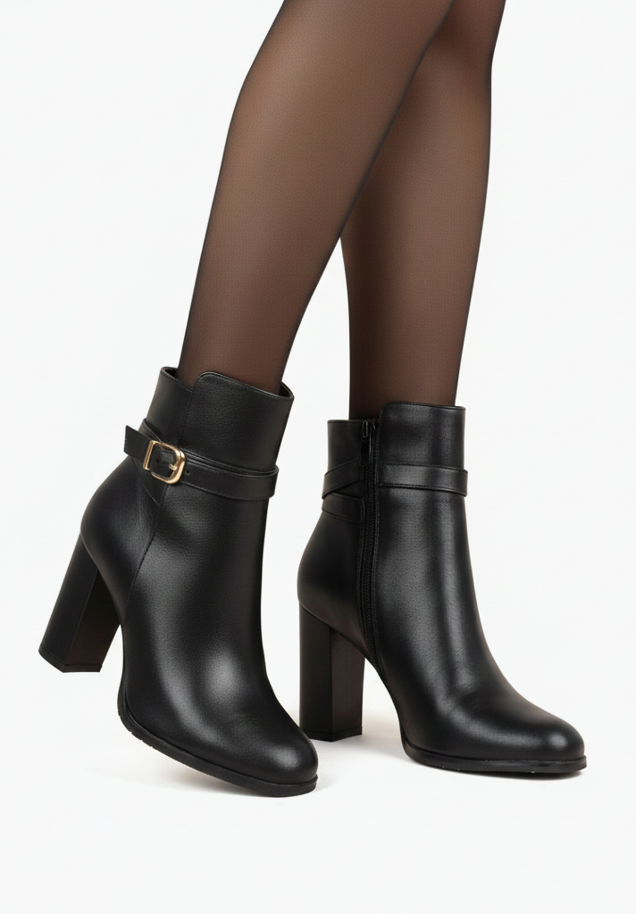 Bottines à talon élégantes pour femme, au design sobre et raffiné, avec bride latérale et boucle. Parfaites pour un style chic et intemporel au quotidien.