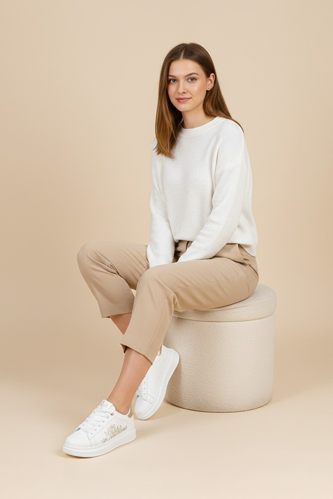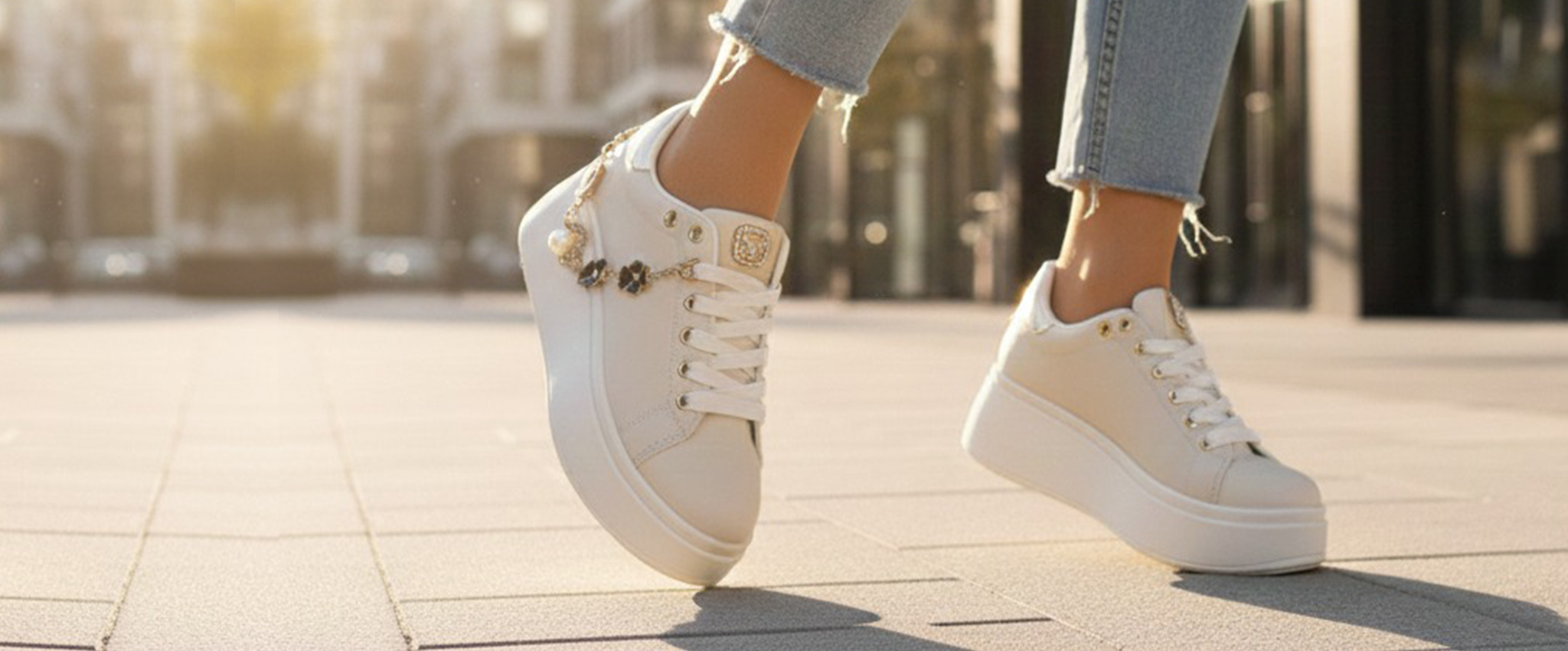 Adoptez nos baskets blanches au design minimaliste, avec semelle épaisse confortable et finition soignée. Elles allient style moderne et confort pour un usage quotidien élégant.
