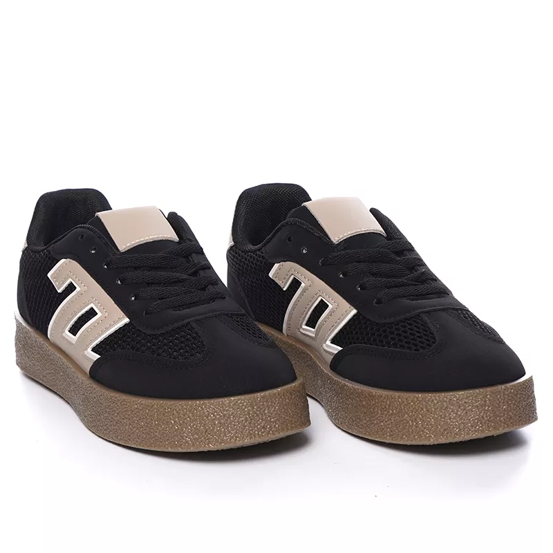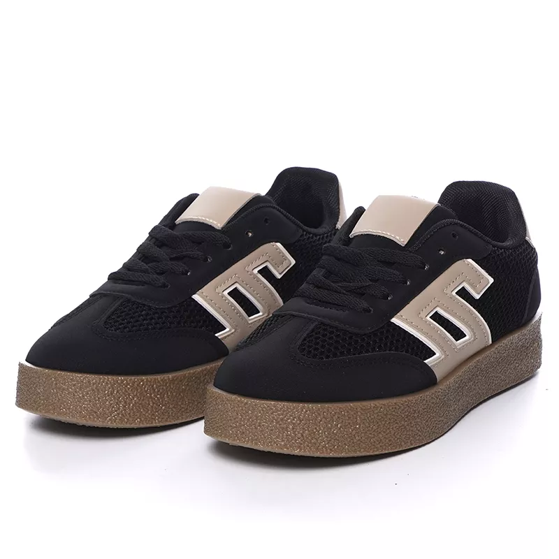 Adoptez ces baskets noires à semelle épaisse, alliant design moderne et confort optimal. Leur style tendance avec détails contrastants apporte une touche sportive et élégante, idéale pour un look casual au quotidien.