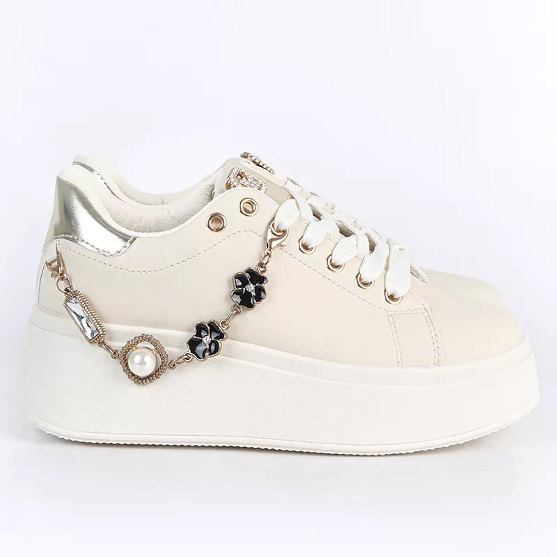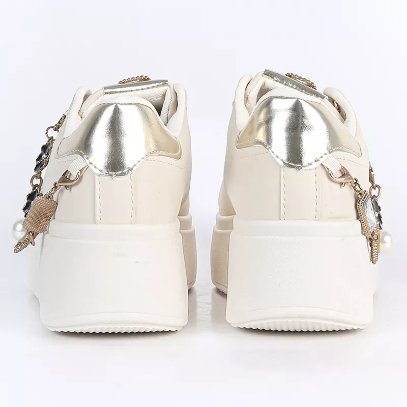 Baskets femme à semelle épaisse au design moderne, rehaussées d’un élégant détail chaîne décoratif. Confortables et tendance, elles s’adaptent parfaitement à un style casual chic au quotidien.