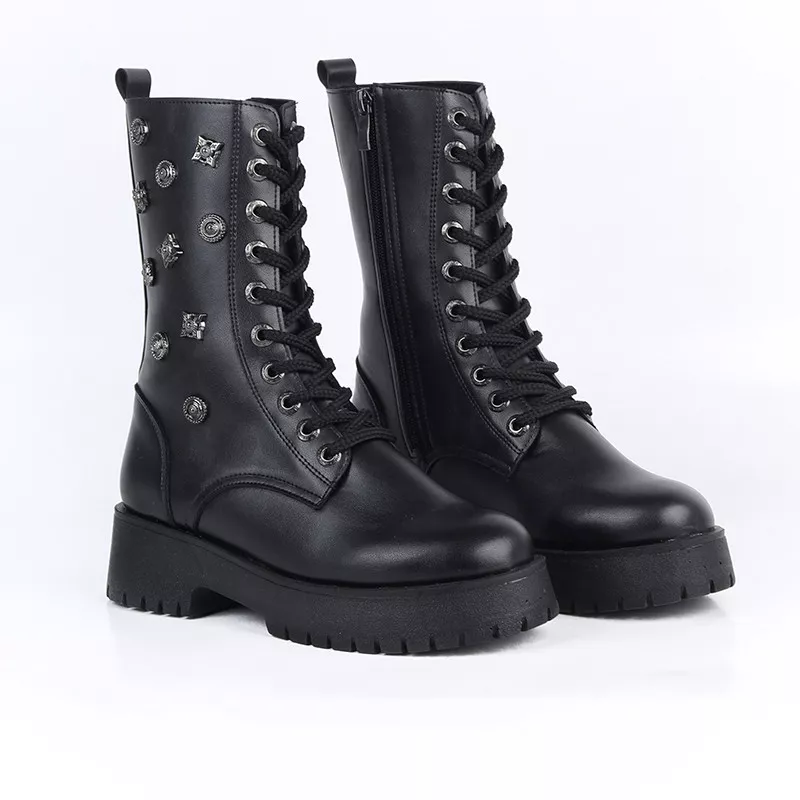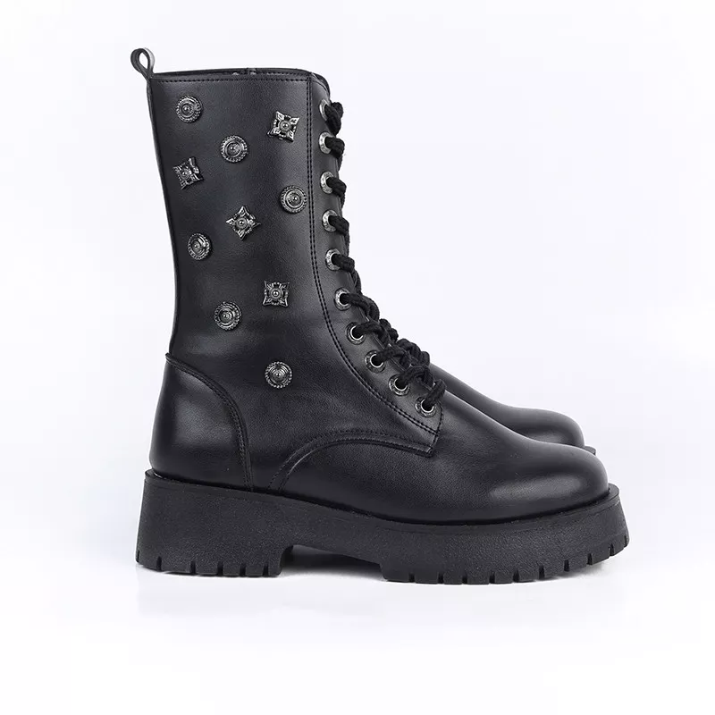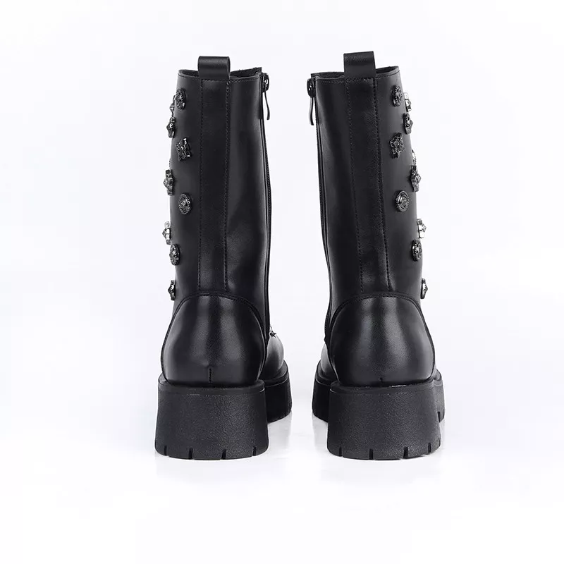 Bottines tendance à semelle épaisse, ornées de doubles boucles métalliques pour un look moderne et affirmé. Confortables et faciles à porter, elles s’adaptent parfaitement aux tenues du quotidien.