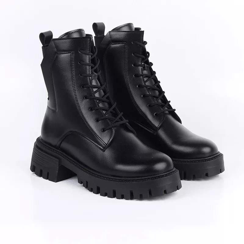 Découvrez ces bottines élégantes à lacets, alliant style contemporain et semelle épaisse antidérapante pour un confort optimal toute la journée. Proposées en noir et marron, elles se marient parfaitement avec toutes vos tenues.