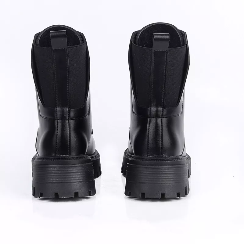 Bottines tendance à semelle épaisse, ornées de doubles boucles métalliques pour un look moderne et affirmé. Confortables et faciles à porter, elles s’adaptent parfaitement aux tenues du quotidien.