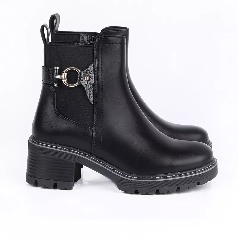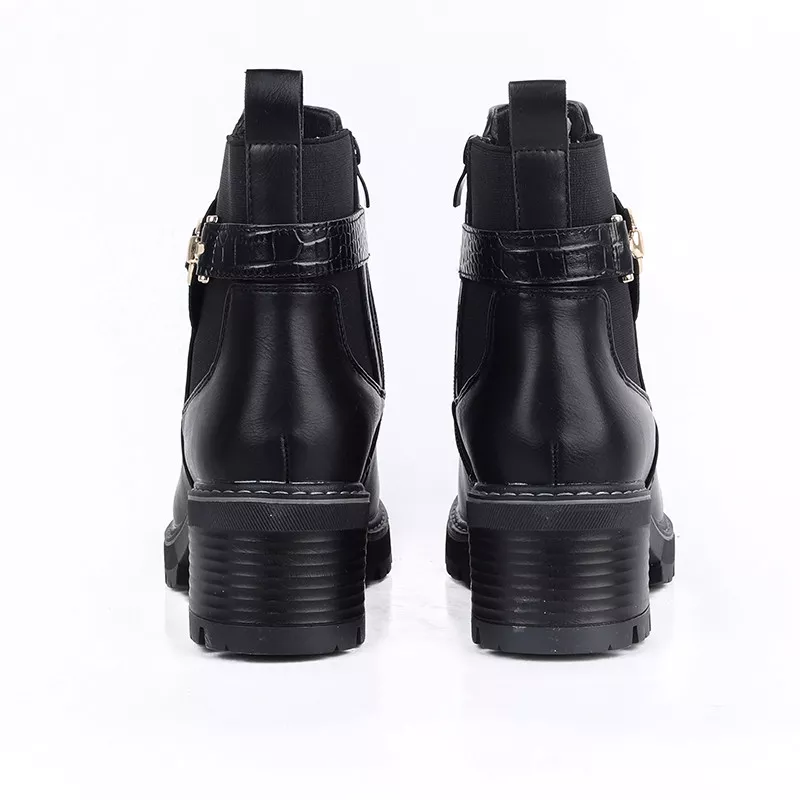 Bottines tendance à semelle épaisse, ornées de doubles boucles métalliques pour un look moderne et affirmé. Confortables et faciles à porter, elles s’adaptent parfaitement aux tenues du quotidien.