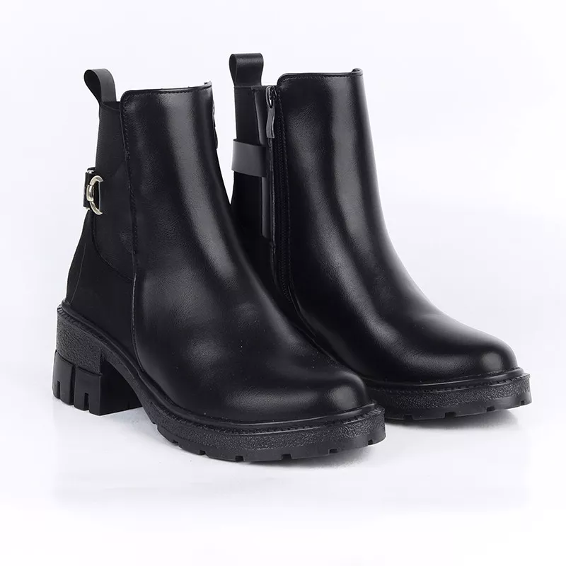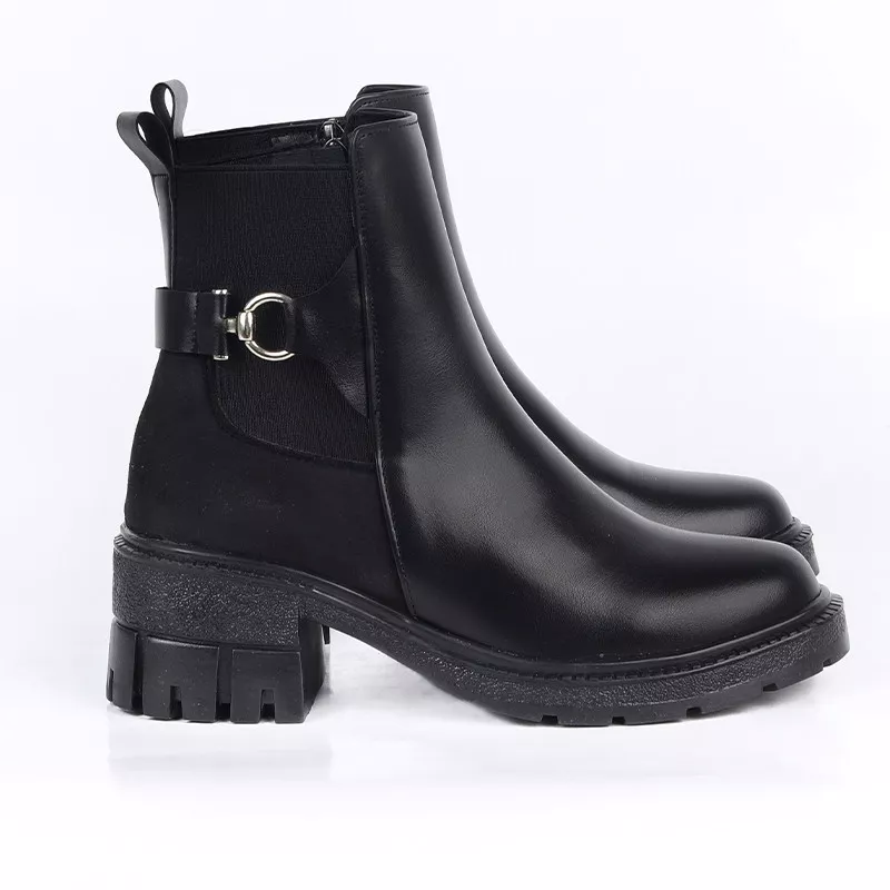 Bottines à Talon Épaisse avec Boucle Métallique