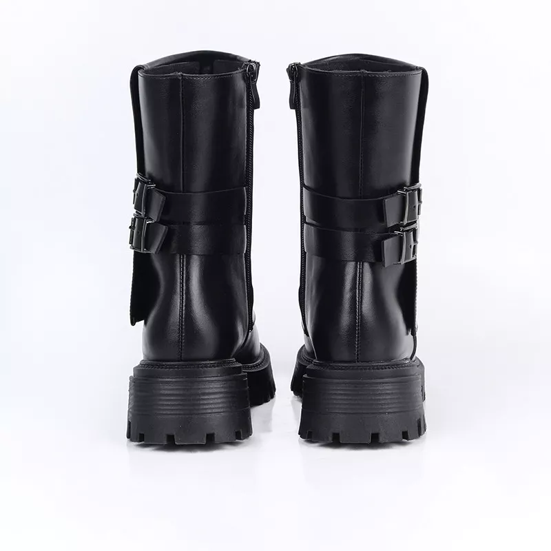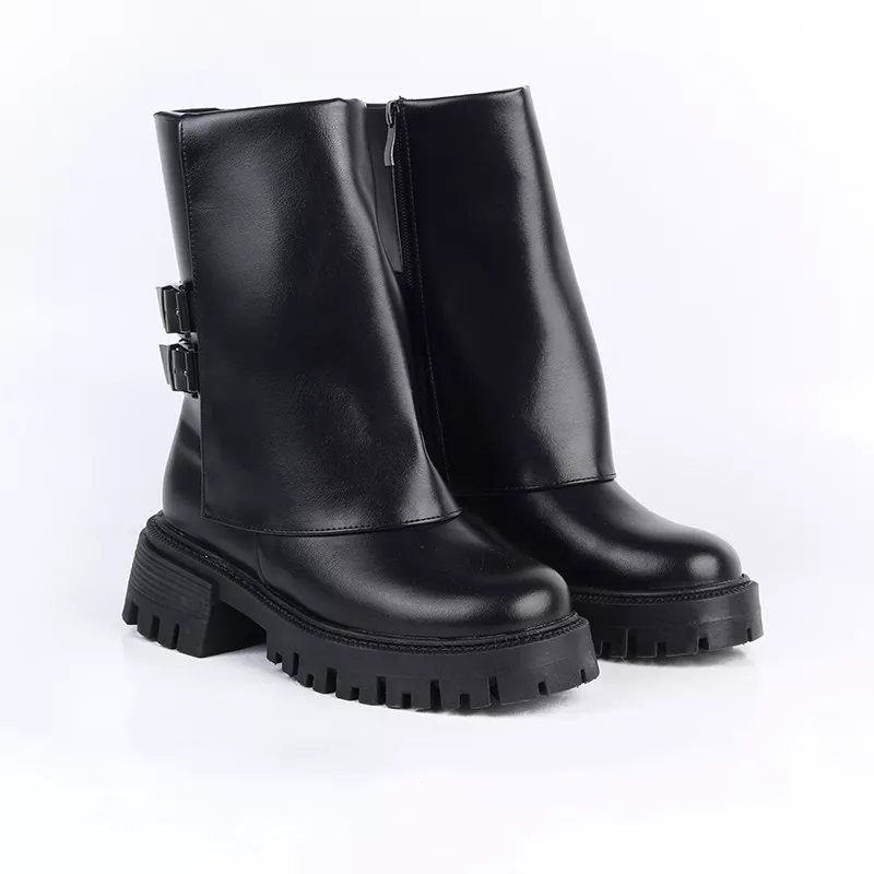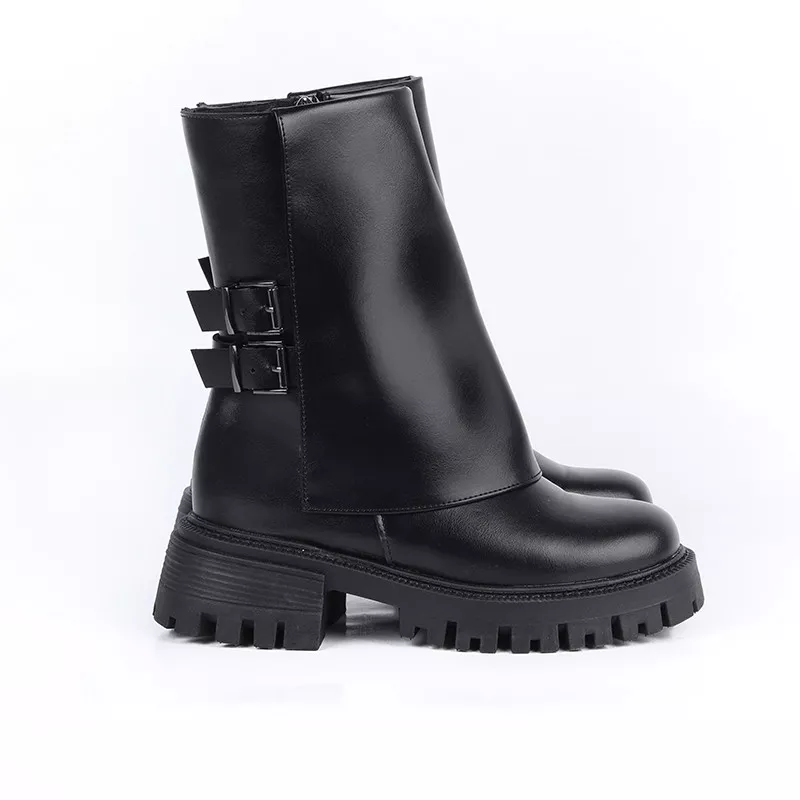 Bottines tendance à semelle épaisse, ornées de doubles boucles métalliques pour un look moderne et affirmé. Confortables et faciles à porter, elles s’adaptent parfaitement aux tenues du quotidien.