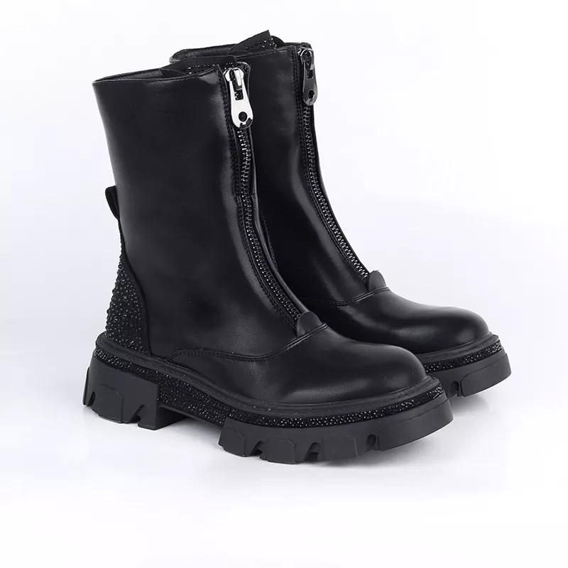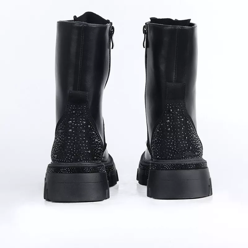 Bottines tendance à semelle épaisse, ornées de doubles boucles métalliques pour un look moderne et affirmé. Confortables et faciles à porter, elles s’adaptent parfaitement aux tenues du quotidien.